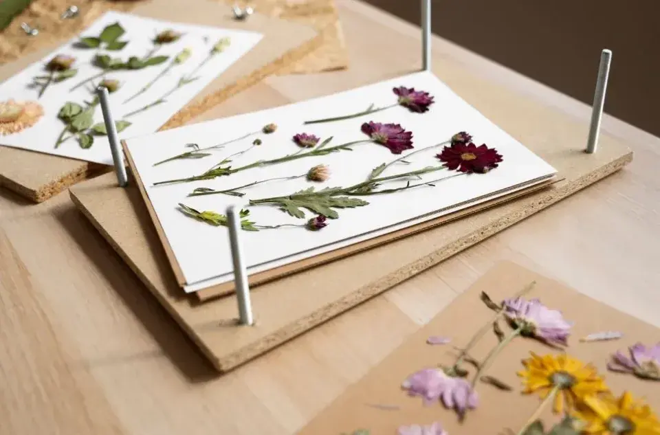 Domácí lis na květiny je jednoduchý a funguje skvěle. Stačí dvě prkénka, čtyři šrouby a pár vrstev papíru. A máte profesionální výsledek.