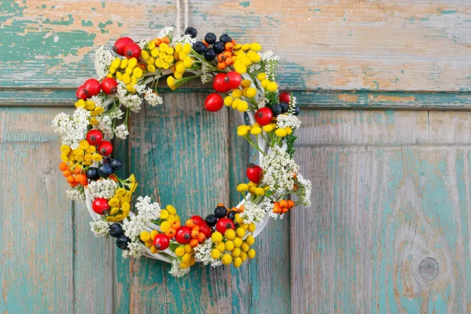 Rostliny a plody můžete jednoduše navazovat na proutěný nebo slaměný základ věnečku tenkým provázkem nebo vázacím drátkem