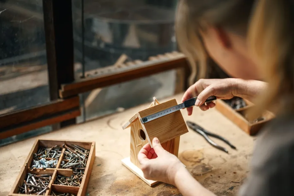 Hotovou ptačí budku zkontrolujte metrem a vodováhou