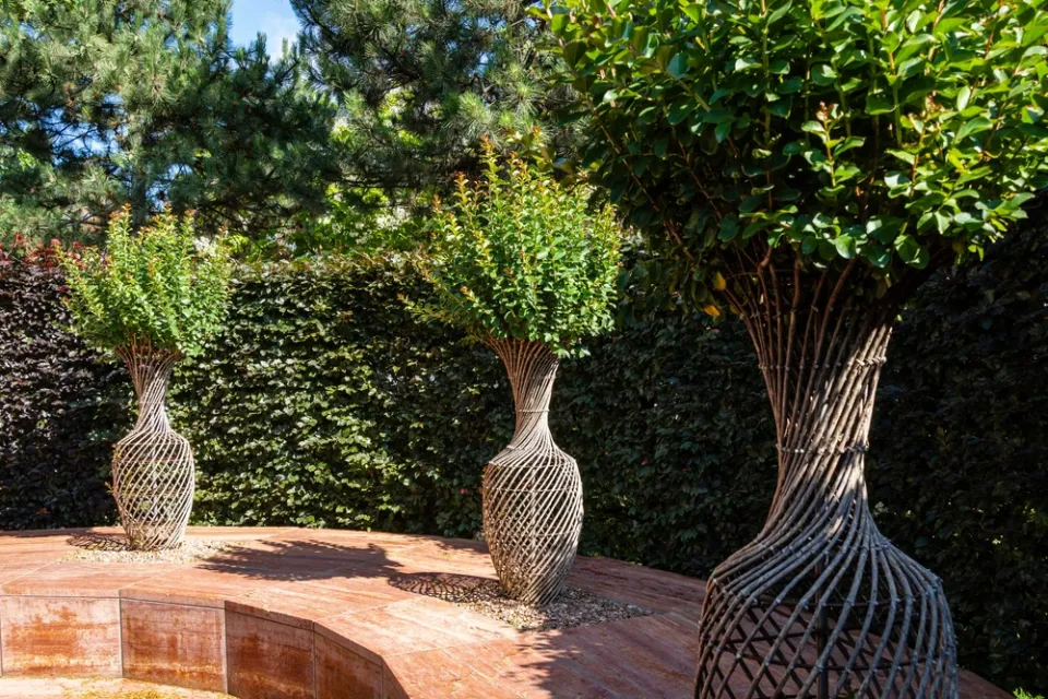 Nevšední "živé" vázy, splétané z výhonů sedmisynu