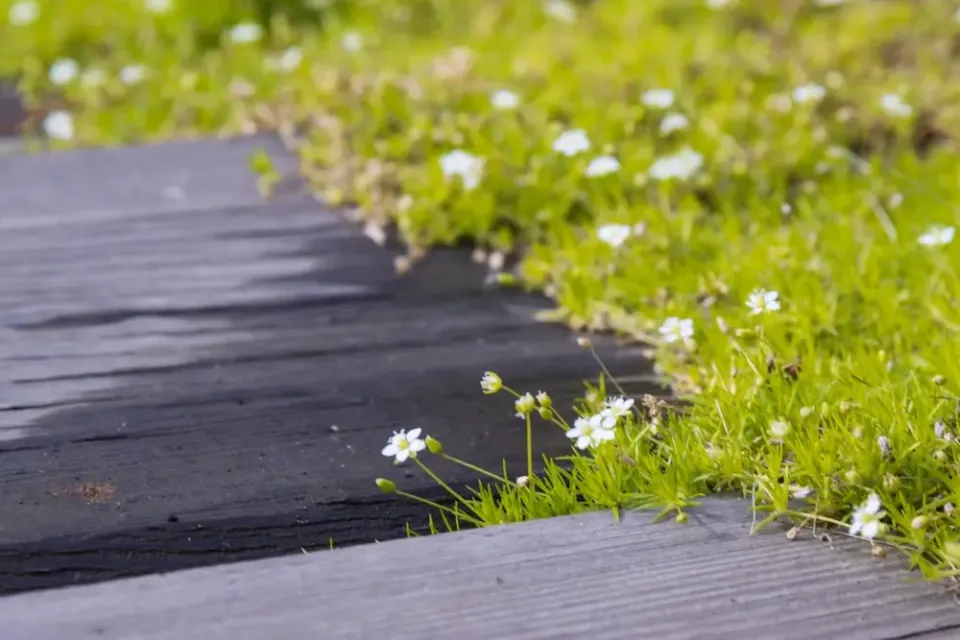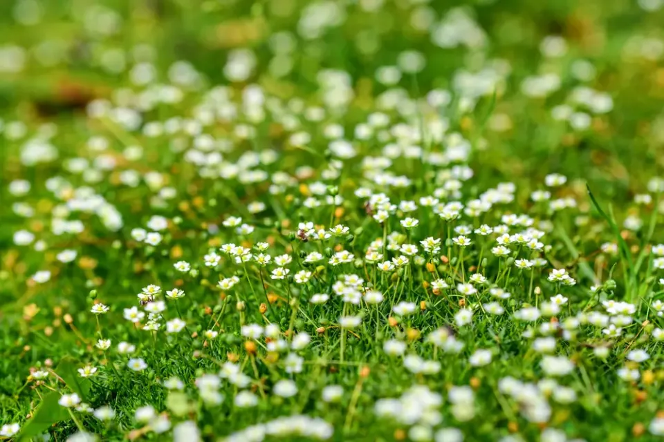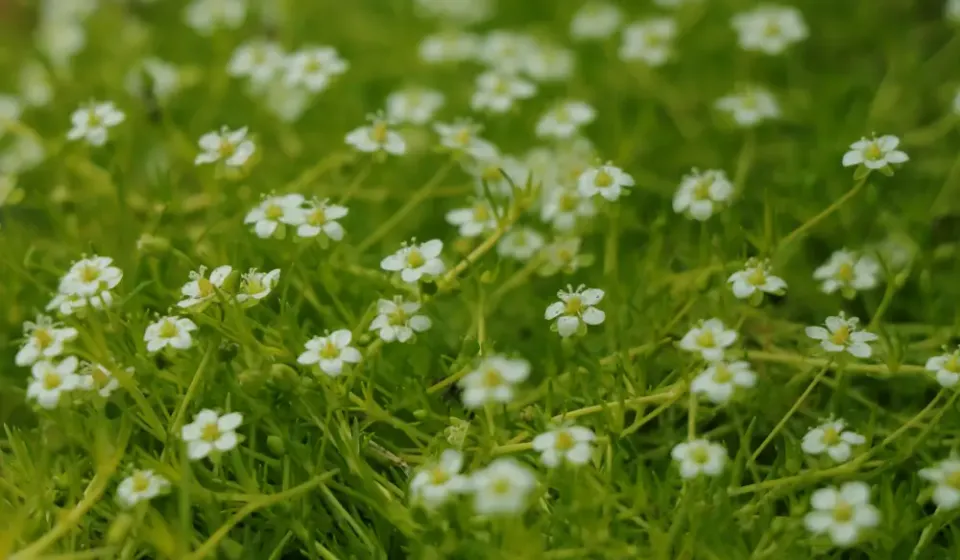Úrazník neboli sagina vytváří mechové, bíle kvetoucí koberce