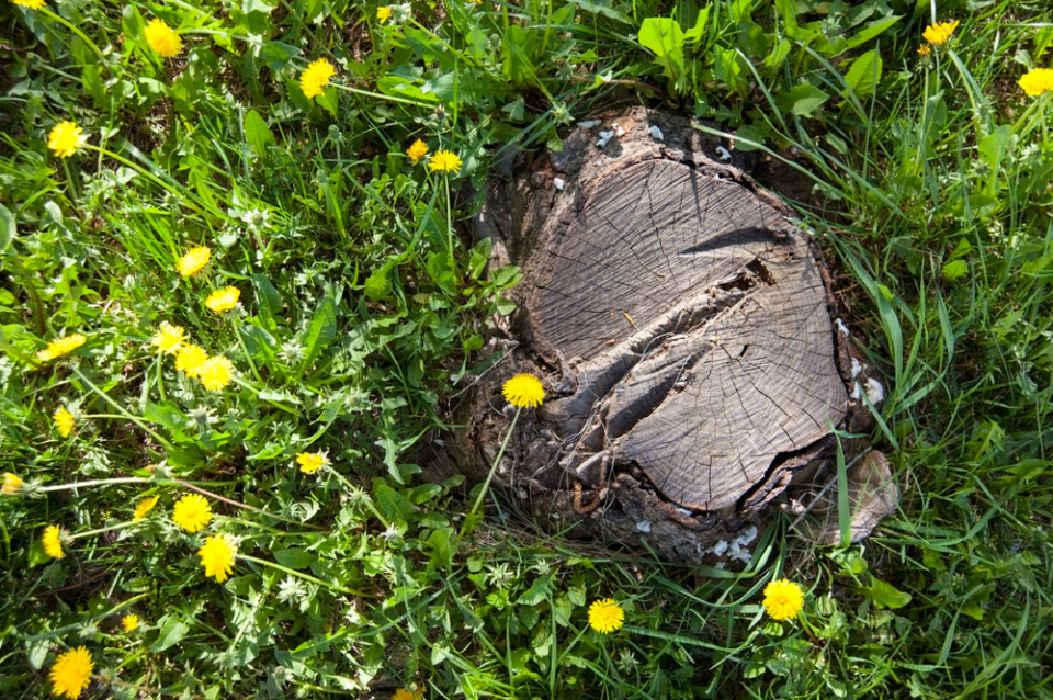 Pařez v zahradě nikdy nenechávejte zarůst trávou, potom totiž na něj zapomenete a můžete si zničit sekačku