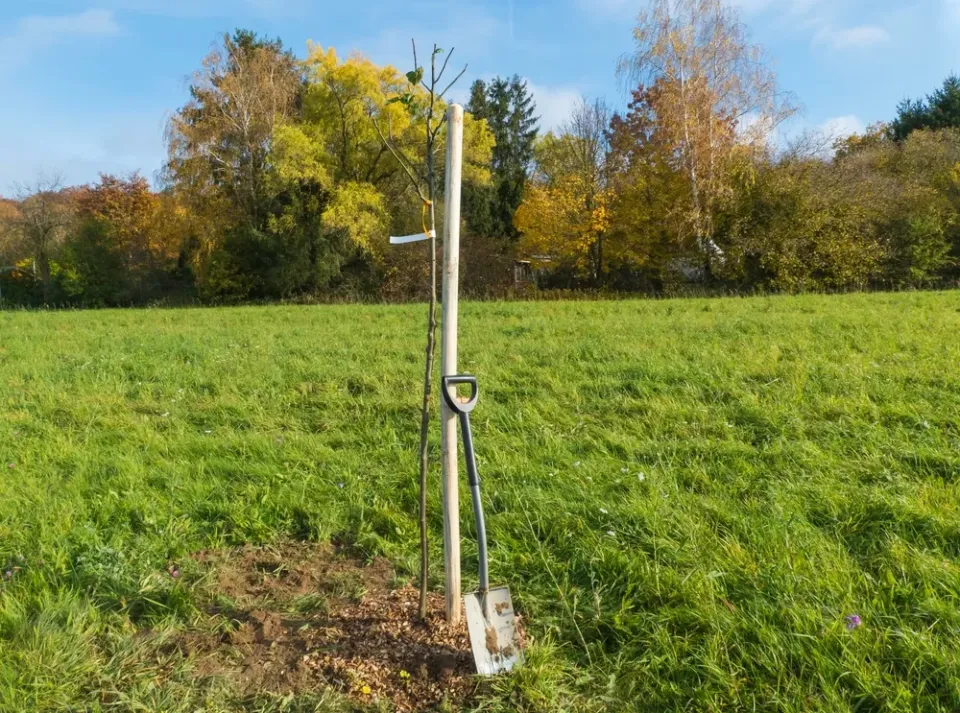 Při sázení stromů nezapomeňte na opěrný kůl - měl by končit ve výšce budoucí koruny a v zemi pevně, aby se nehýbal.