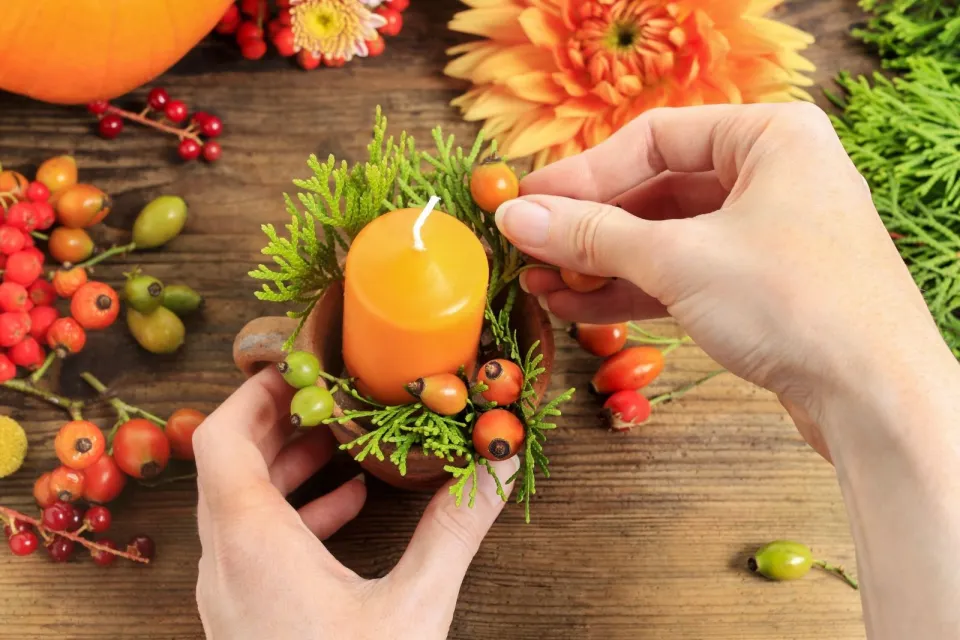 - GALERIE: Poutavý podzimní svícen z hrnečku, šípků a konifery rozsvítí váš domov