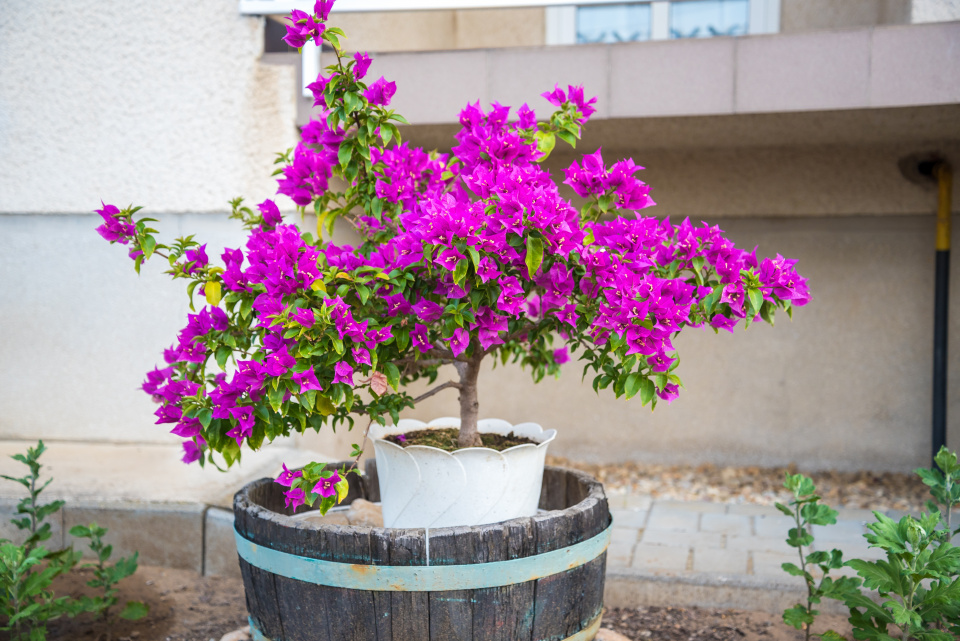 Doma si bugenvileu můžeme zapěstovat jako malý stromek nebo keřík nebo ji můžeme připevnit k opoře či pergole.