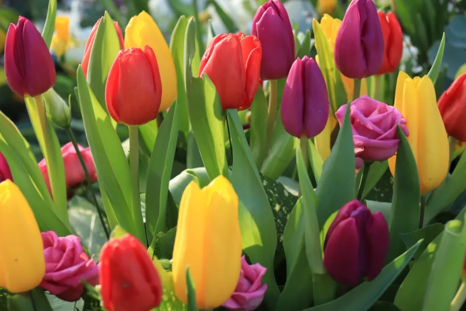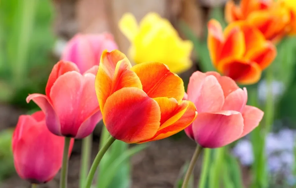 Záhon plný tulipánů