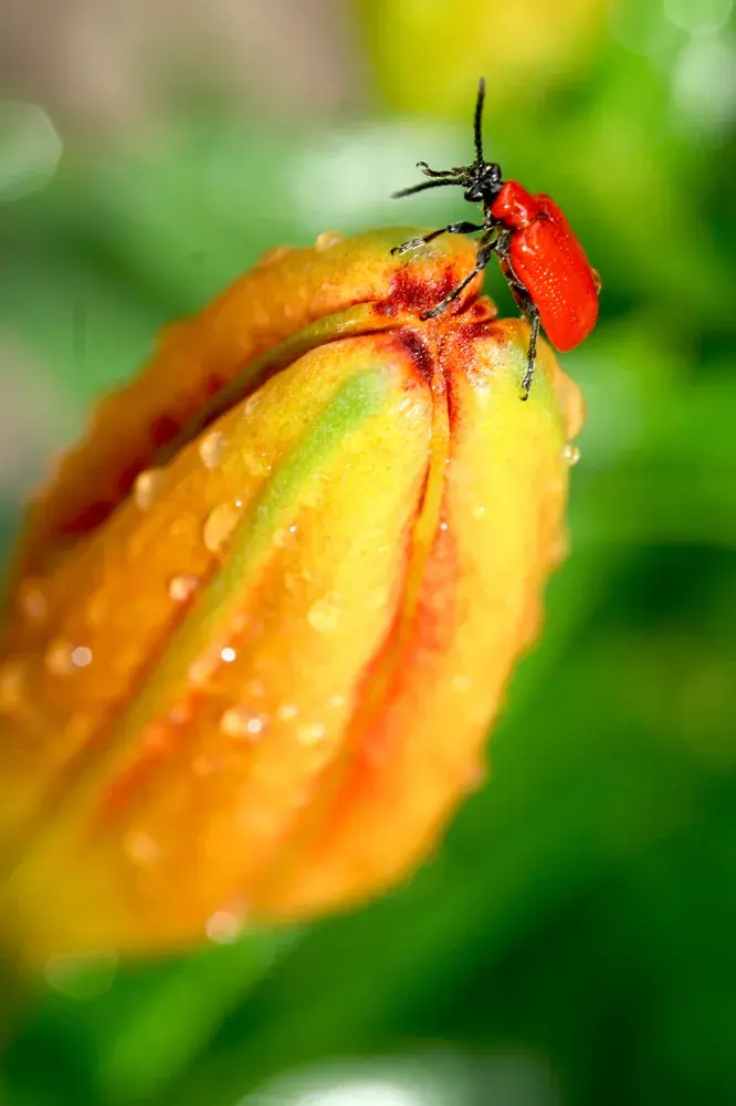Tyto krásné květy dokáže zničit docela malý brouk, škůdce lilií - chřestovníček