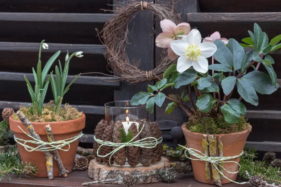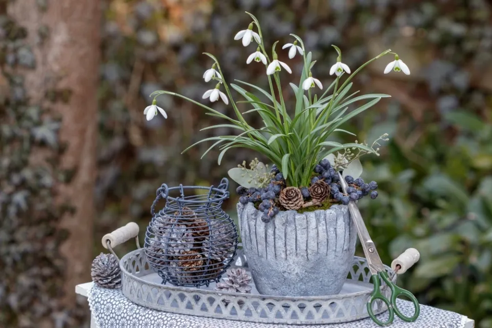 Sněženky krásně doplní obyčejné šišky a vánoční výzdoba bude hotová raz dva