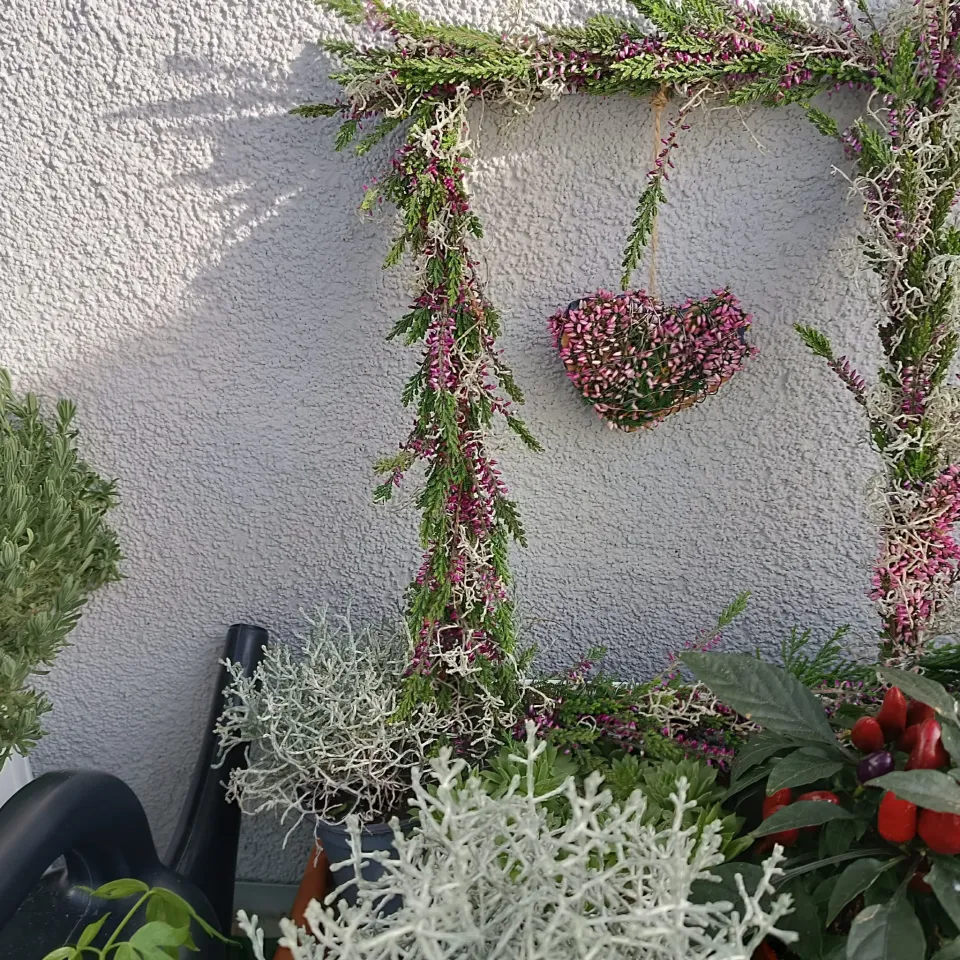 Vřesový rámeček nemusí viset jen na dveřích, ale klidně i na zdi
