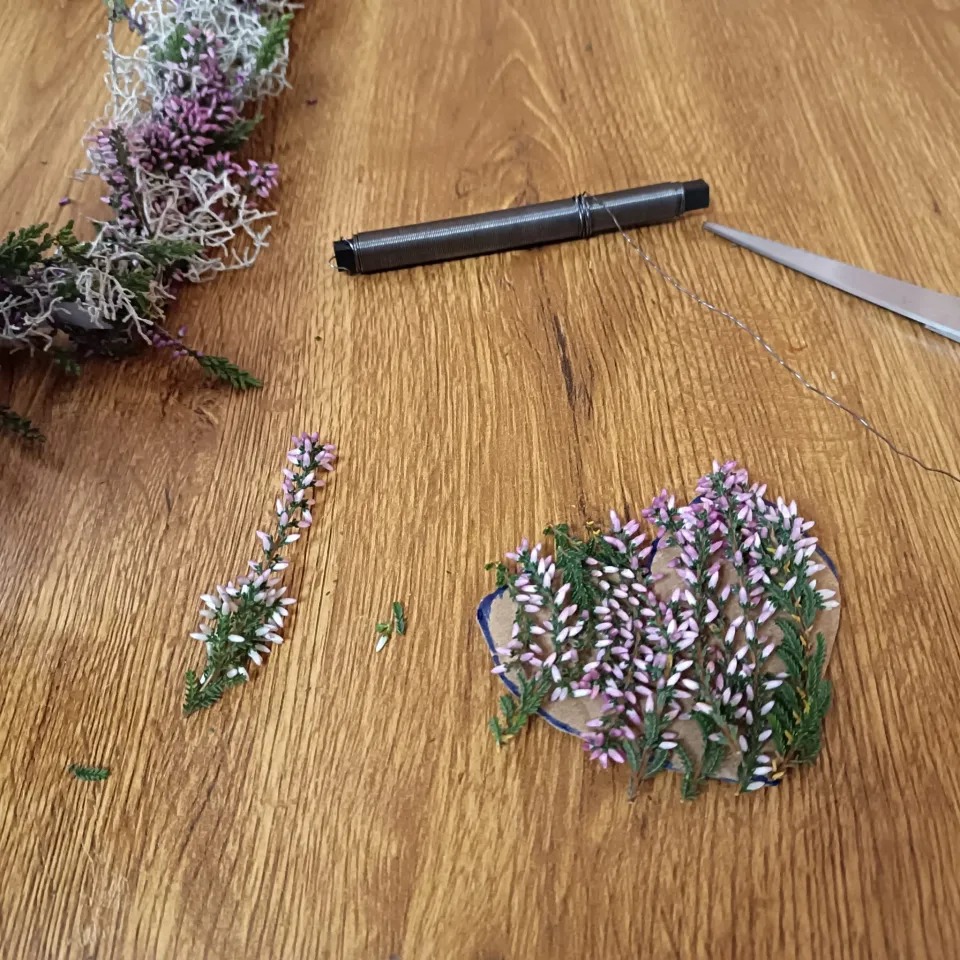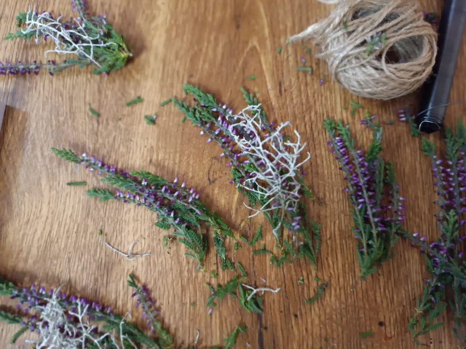 Vřes si nastříhejte na malé snítky. Přidejte k němu i větvičku drátovce