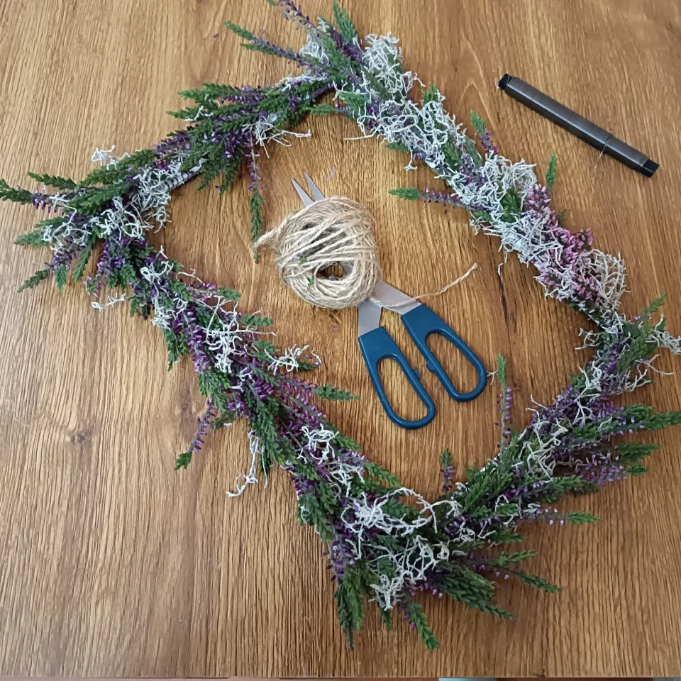 Na srdce navrstvěte vřes a omotejte ho drátkem