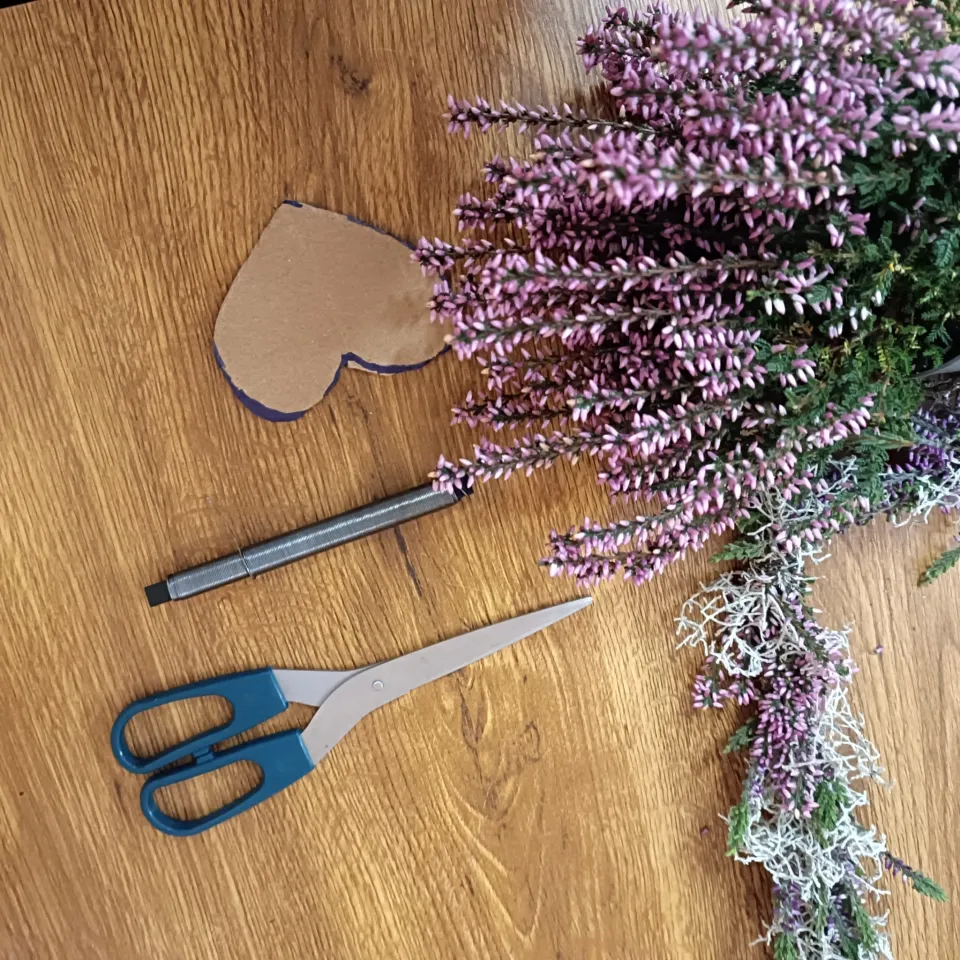 K tvoření z vřesu potřebujete ještě rámeček, floristický drát, lepenku a nůžky