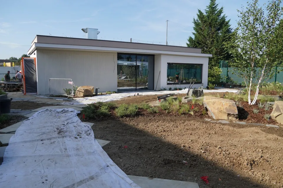 Přístavek wellness centra OMEGA v Olomouci – projekt rozšíření od Ing. arch. Alice Michálkové (AMTB s.r.o.) začal na podzim 2022 a od jara 2023 zahrada postupně ožívá, propojujíc interiér s venkovní oázou klidu