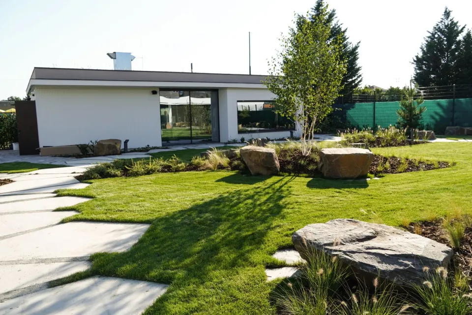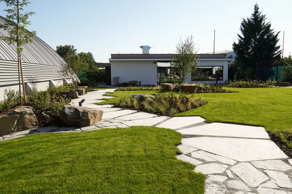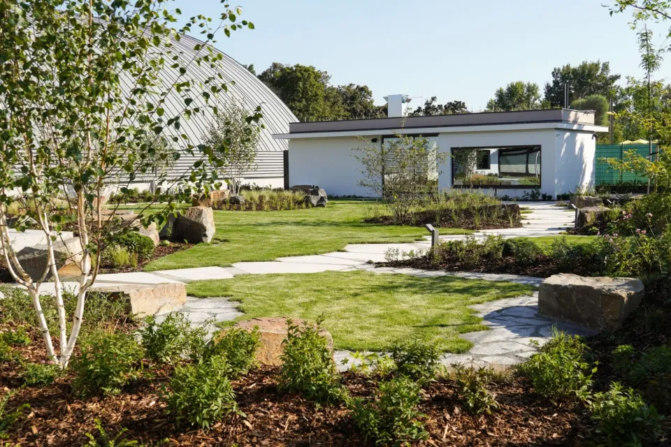 Před proměnou zahrady wellness centra OMEGA čekala tým architektů a zahradníků spousta práce – prázdný trávník se měl proměnit v oázu klidu a harmonie