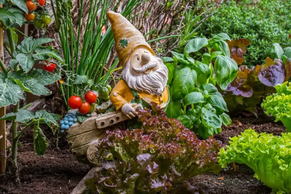 Trpaslíci v zahradě mohou být klidně umístěni v zeleninovém záhonu a budou vypadat dobře