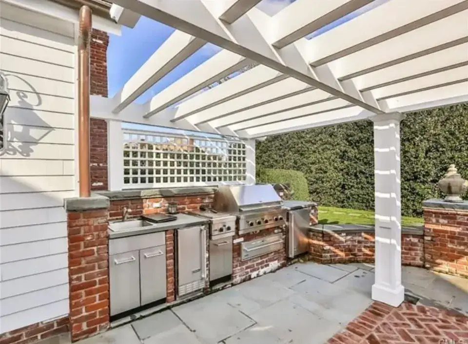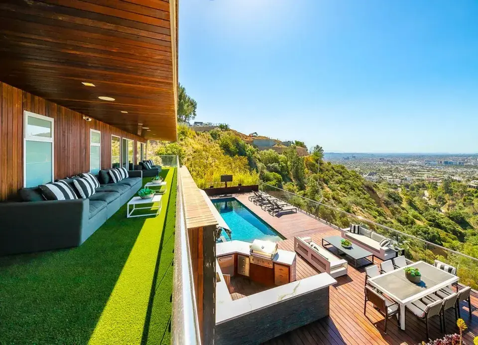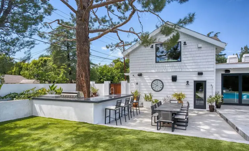 Obrovská terasa s barem a venkovní kuchyní Teddi Mellencamp ukazuje, jak spojit pohodu a luxus. Její prostor je ideální zahradní inspirací pro letní večírky s přáteli.