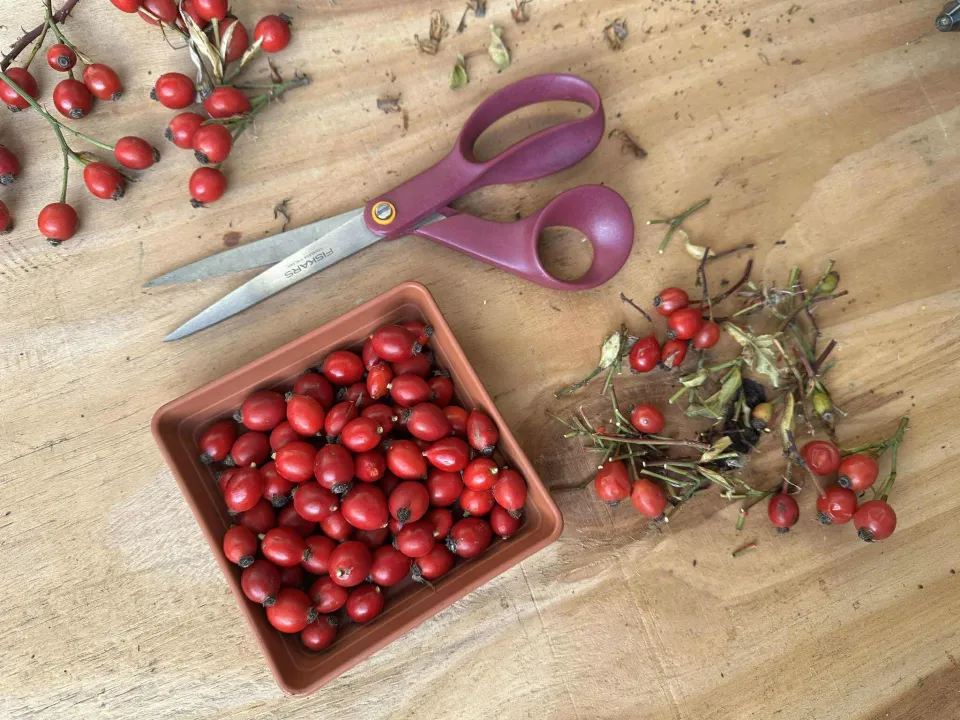 Nejprve z šípků zahradnickými nebo obyčejnými nůžkami odstřihněte stopky