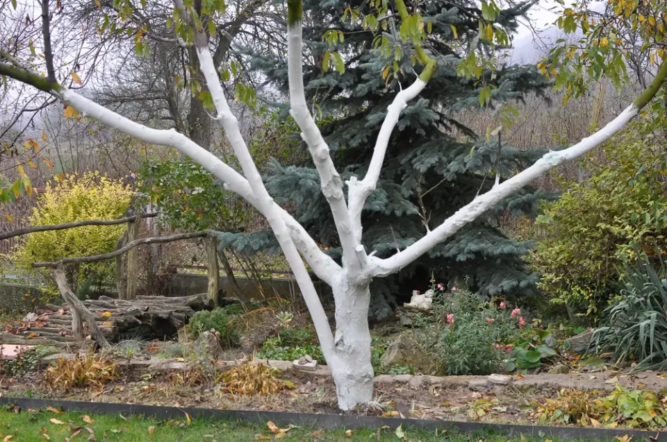 Bělení ovocných stromů bývá ve velkých ovocných sadech velmi časté, protože bílá barva ochrání strom před nepříznivými vlivy, včetně škůdců