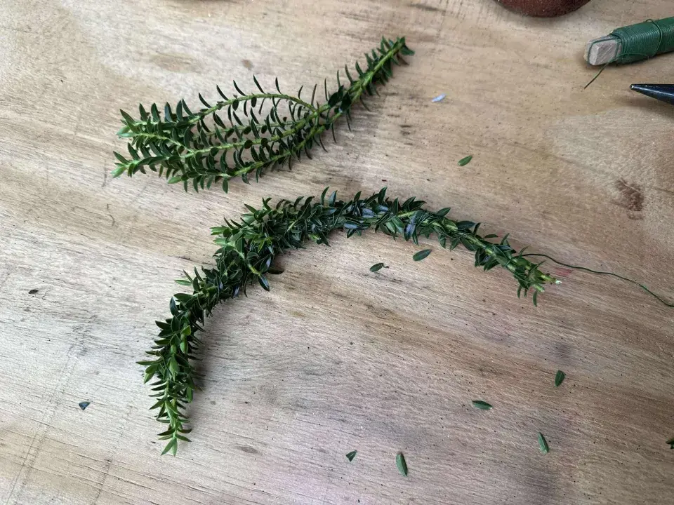 - pár jemných větviček hebe (případně eukalyptu nebo větviček smrku či jedle)
