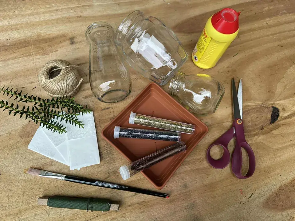 Co budete potřebovat na třpytivé svícny ze zavařovaček: