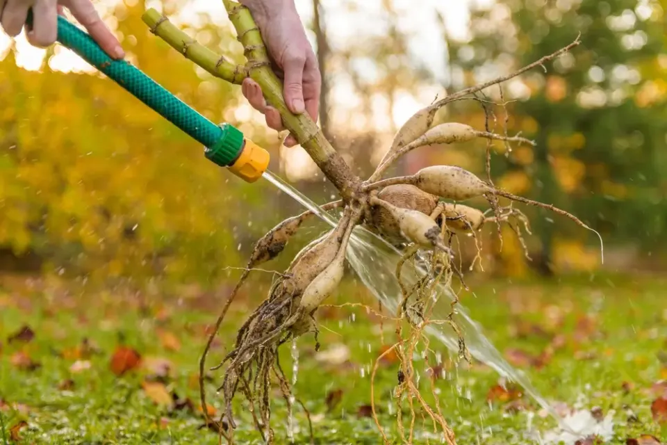 Uskladněte hlízy a cibule někam do chladna a sucha. Pro uchování použijte pouze suché a vyčištěné hlízy nebo cibule a rovnou zapomeňte na podobné čištění proudem vody. Tento způsob očisty zásobních orgánů vám jen zvýší riziko výskytu houbových chorob a je naprosto nevhodný. Přebytečná zemina se odstraňuje až po zaschnutí ručně, nikoliv proudem vody