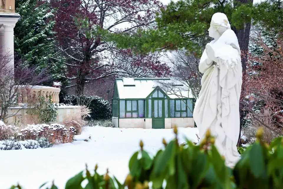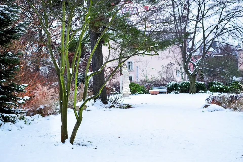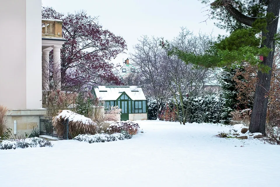 Tuhle zahradu, schovanou v pražské vilové čtvrti, známe v letní podobě. Jak moc se promění, když napadne sníh?