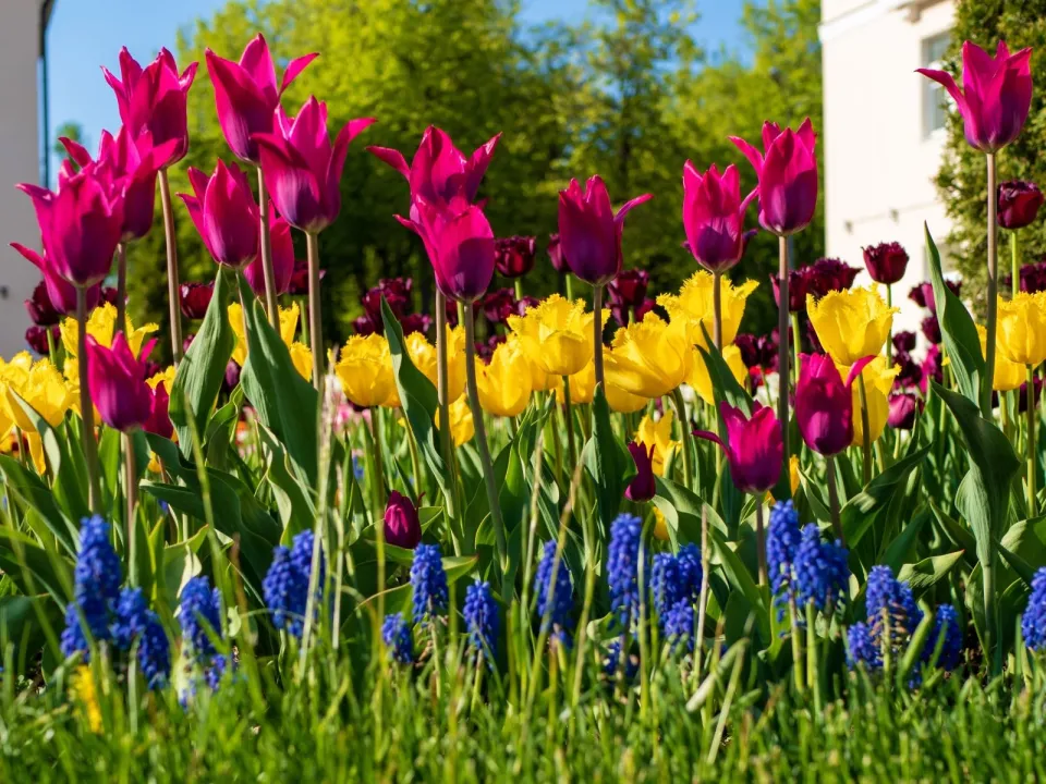 Top trend 2025 ve výsadbě cibulovin nejen na balkon je použití různě vysokých cibulovin