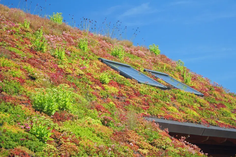 Zelené střechy bývají nejčastěji osázeny suchomilnými druhy jako jsou hlavně rozchodníky, netřesky nebo suchomilné trvalky