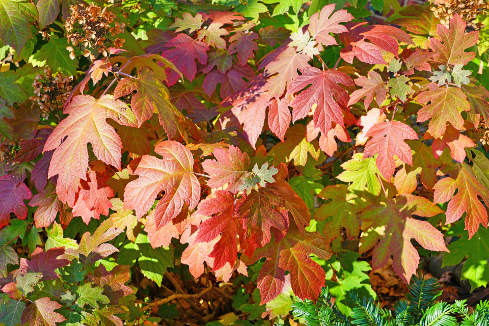 Hortenzie dubolistá je okrasná nejen svými květy, ale také barvou a tvarem listů