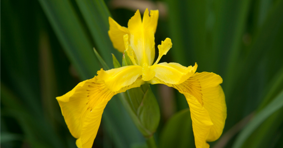 Kosatec žlutý (Iris pseudacorus) má silný oddenek a roste na vlhkých až bahnitých místech.