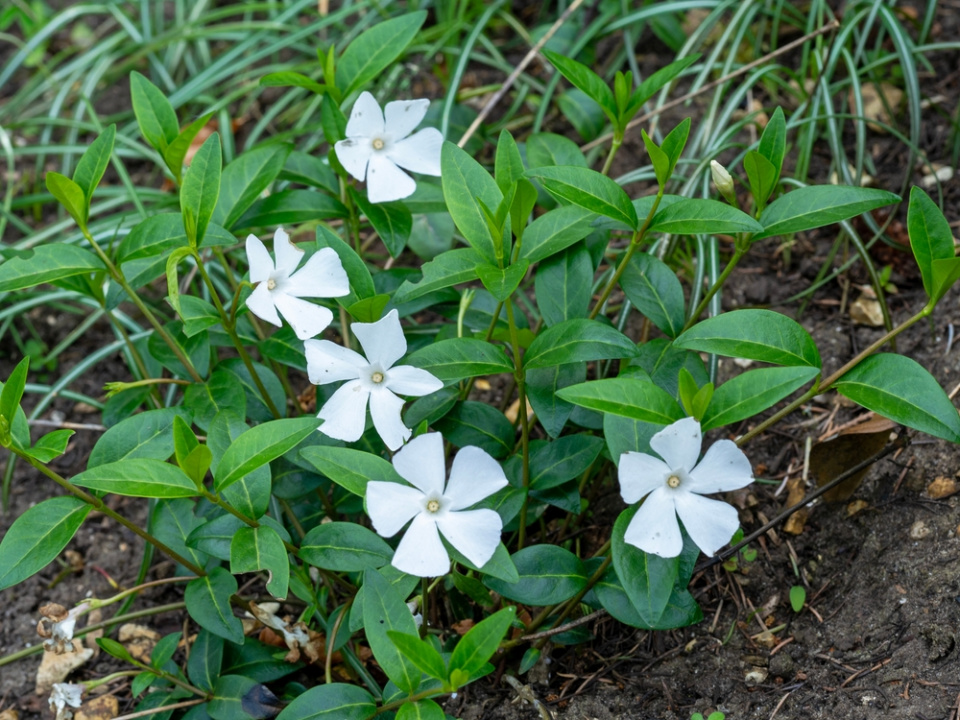 Barvínek menší 'Alba' vykvétá od května do července bílými květy