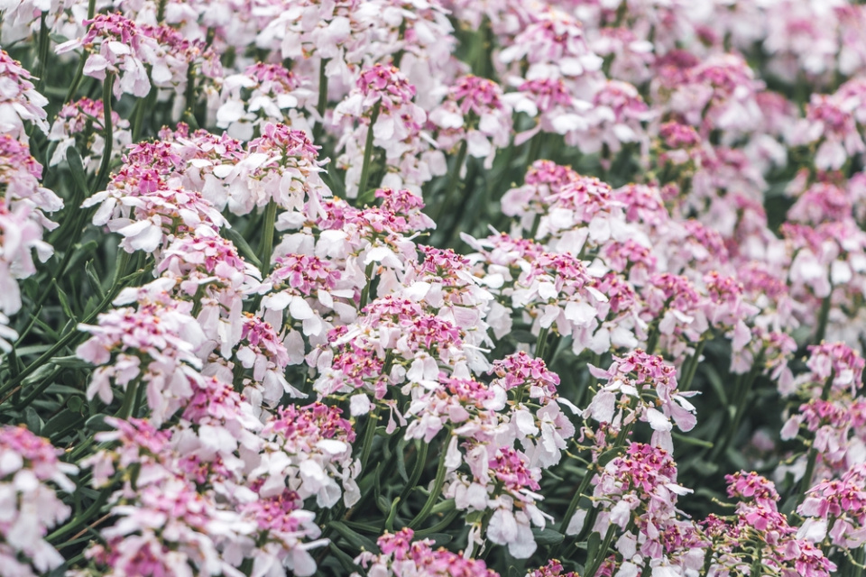 Jemně narůžovělé květy iberky vždyzelené, odrůda ’Pink Ice’