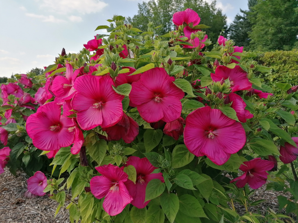 Ibišek bahenní je svými obřími květy doslova obsypán