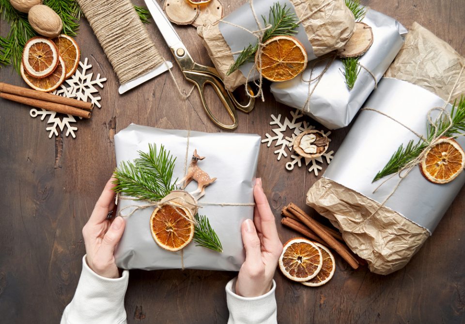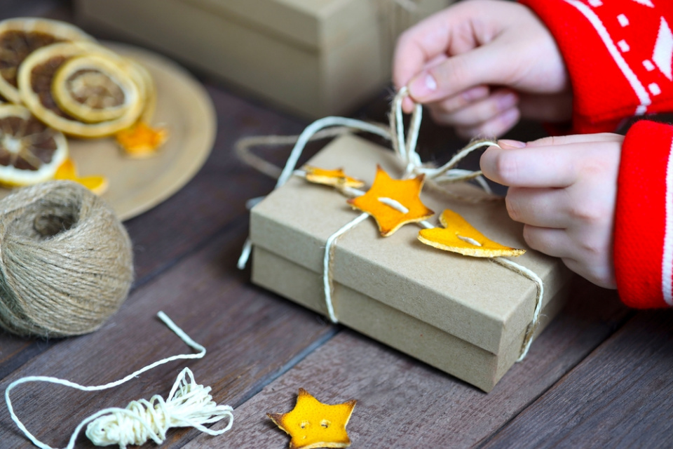 Slupky z citrusů ozdobí vánoční dárky.