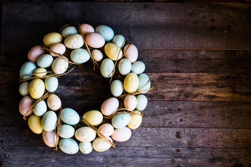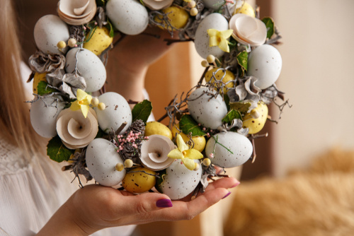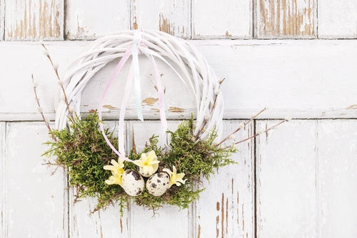Věnec z křepelčích vajíček zaujme na první pohled.