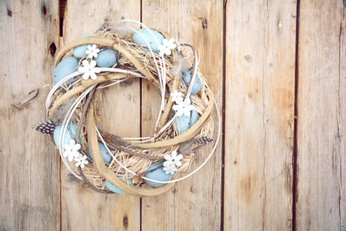Modrá je dobrá - a to dokonce i na velikonočním věnci!