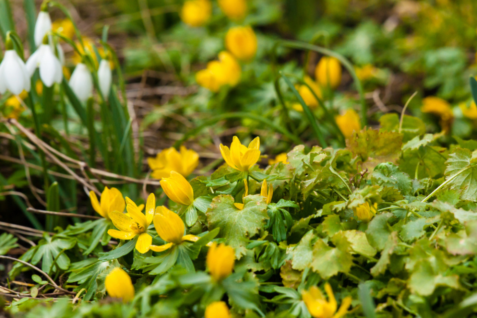 Trávník plný zlatožlutých květů talovínů zdobí zahrady i parky často už v lednu