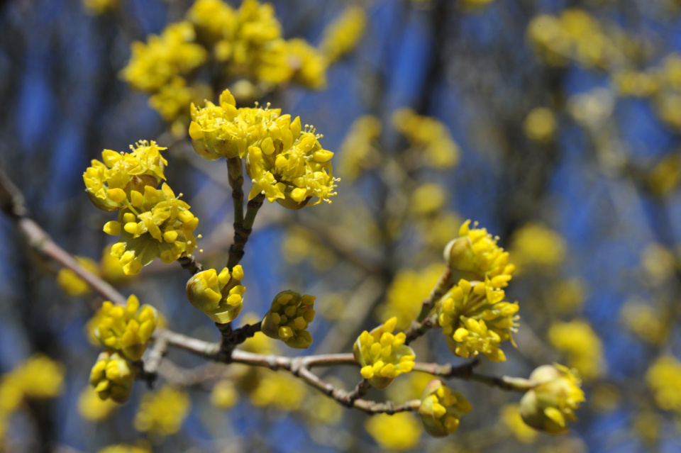 Květy dřínu jsou brzy na jaře první potravou pro včely