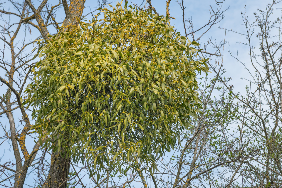 ochmet evropský rovněž roste v korunách stromů, hlavně dubů