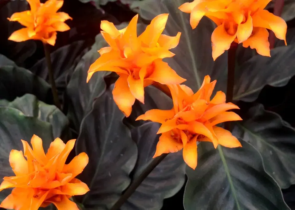 Calathea crocata vykvétá nádhernými oranžovými květy, její listy jsou méně nápadné