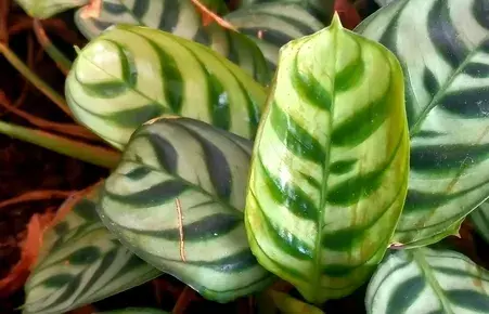 Kalatea zebrina je robusnější rostlina s nápadně pruhovanými listy