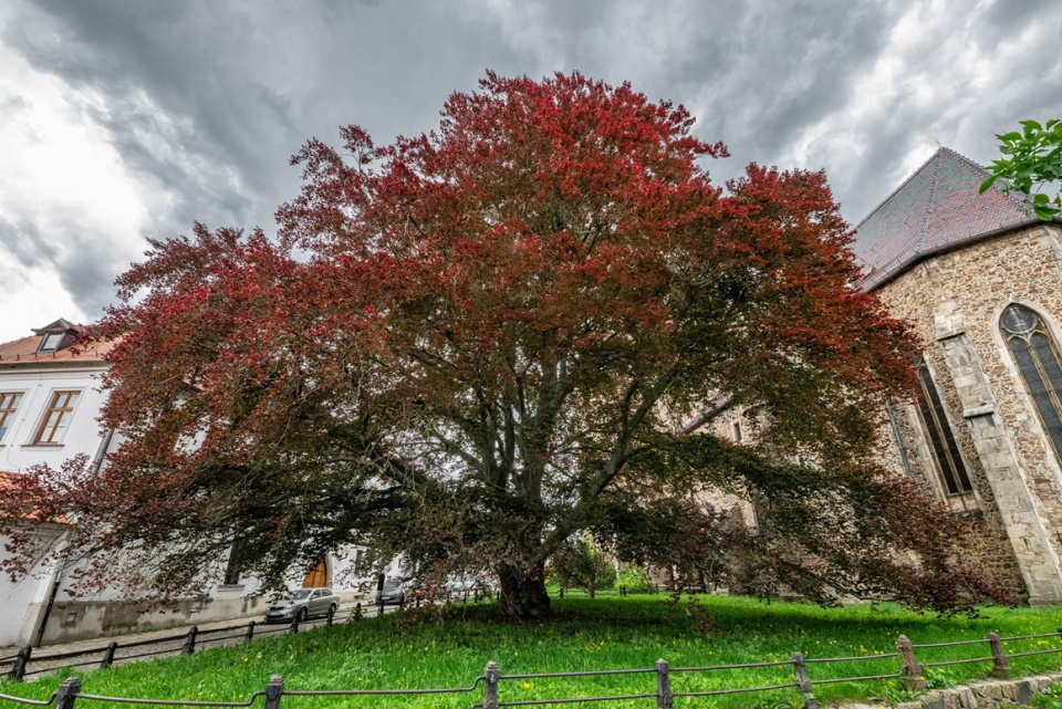 Buk u kostela v Jihlavě (buk lesní červenolistý) - vítěz 2. ročníku (2003), stáří 110 let v době vítězství