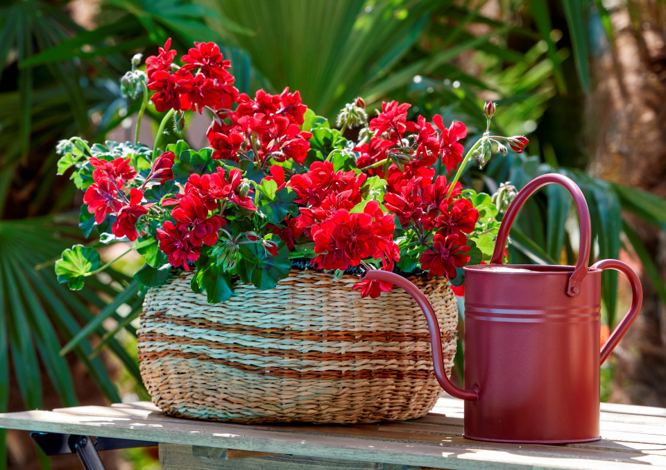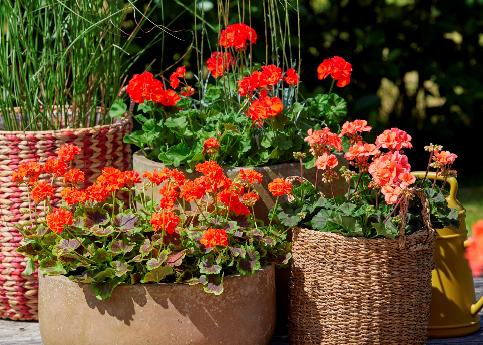 Péče o takto zanořené muškáty v obalu je trochu složitější. Vždy se dobře ujistěte, že je půda vyschlá, než rostlinám dopřejete další zálivku