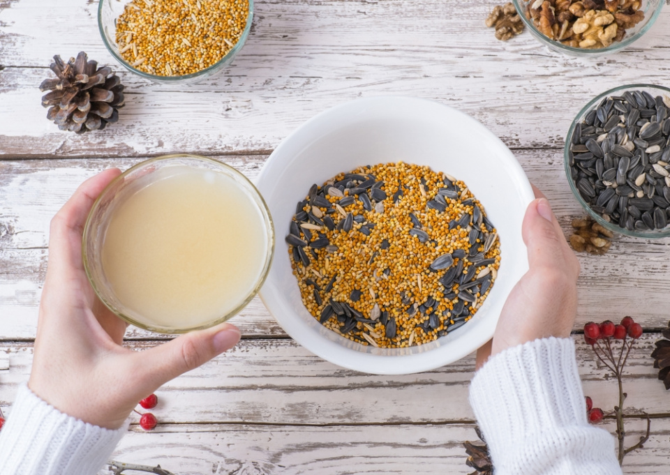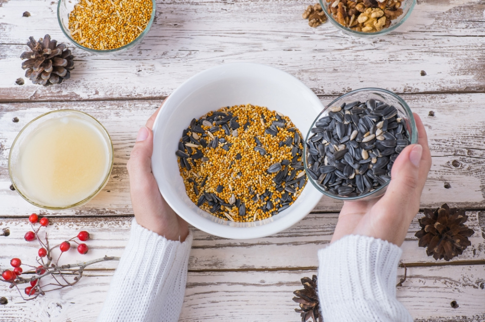 Připravte si směs semínek. Největší podíl by měla představovat slunečnice, která patří mezi téměř univerzální ptačí pochoutky