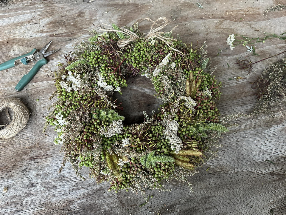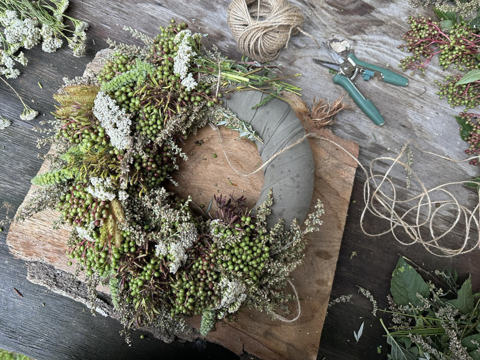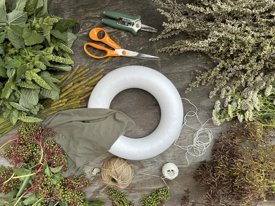 Na věnec si připravte hodně rostlinného materiálu. Skoro vždy je ho potřeba mnohem více, než jste si původně mysleli