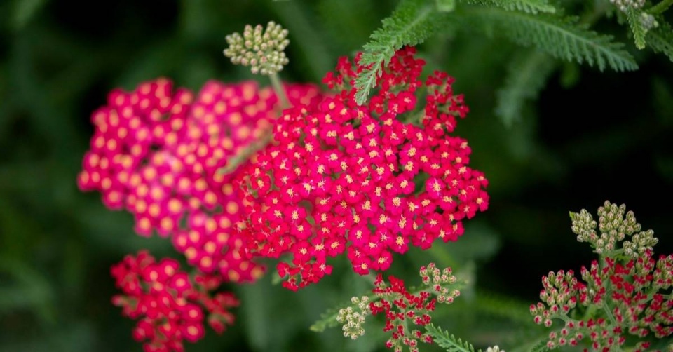 Pro kultivar řebříčku 'Burgundy' je typické výrazně tmavočervené květenství.