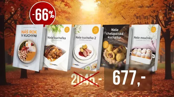 Zajímavý je také balíček kuchařek z edice Toprecepty.cz. Obsahuje tituly Náš rok v kuchyni, Naše kuchařka 1 a 2, Naše chalupářská kuchařka a Naše moučníky. Tuto pětici knížek si můžete koupit za 677 korun.