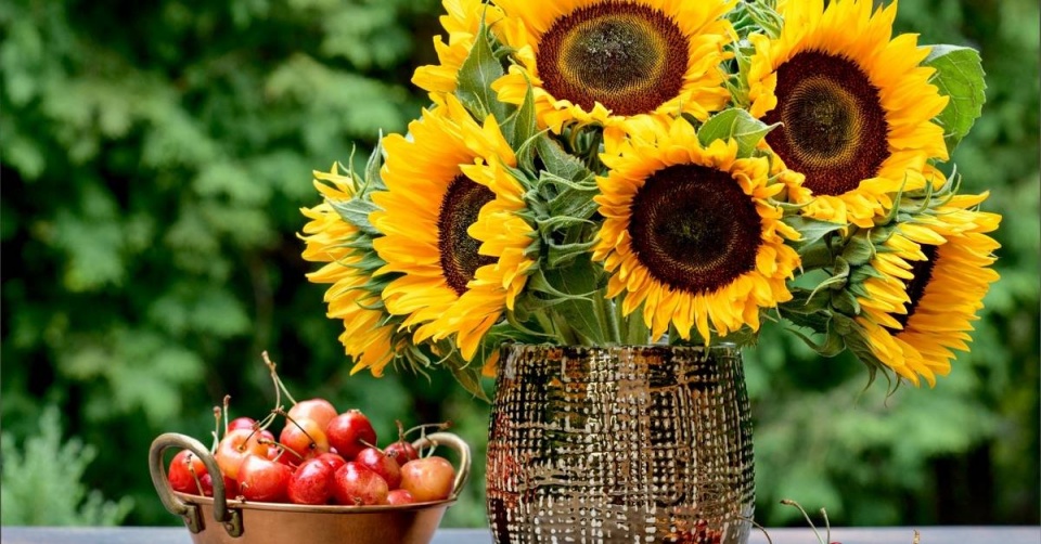 Slunečnice roční (Helianthua annuus) – existuje mnoho okrasných kultivarů, které kvetou od července do října. K řezu se uplatní středně vysoké odrůdy, jejichž květy budou dominantami každé kytice. Rostliny však potřebují hodně slunce, vláhy a živin.