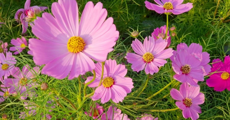 Krásenka zpeřená (Cosmos bipinnatus) – až 120 cm vysoká letnička působí díky čárkovitým listů vzdušně. Květem je úbor a květ může měřit i 10 cm v průměru. Nejčastěji kvete růžově, ale i bíle, červeně nebo fialově, a to od července do září. Jako předchozí letničky vyžaduje slunce, teplo a kyprou propustnou půdu.
