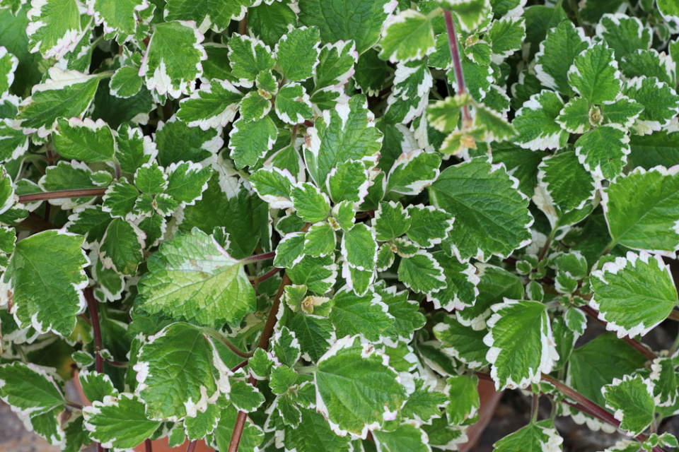 Molice vroubená neboli moud pochvatcovitý či molice Forsterova (Plectranthus coleoides, syn. Lectranthus forsteri): Pochází z Indie, je známá svými silně aromatickými listy a schopností rychlého růstu. Listy jsou vejčité, na okrajích zubaté, svěže zelené s bílým okrajem. Molice brvitá vytváří až 150 cm dlouhé, převislé výhony, které z ní dělají ideální rostlinu do závěsných košů nebo na okraje truhlíků. Výborně se hodí jako doplněk k muškátům, ale i k dalším balkonovým květinám. Nevýrazné květy se opět nejčastěji ihned odstraňují